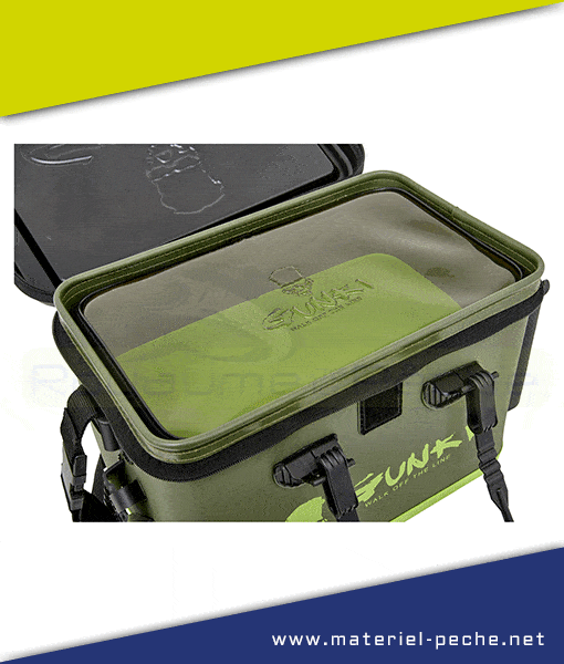 Gunki Safe Bag Lid – Astucieux SAFE BAG dont le format est spécifiquement adapté au couvercle du Bakkan GUNKI HARD LID 40. Il sert aussi bien de stockage dans le compartiment principale, que de desserte une fois placé sur le couvercle du bakkan (ses dimensions sont ajustées pour optimiser le maintien sur ce support).Pratique pour stocker séparément les leurres qui ont servi en pêche de ceux stockés dans le compartiment principale; et qui devront être rincés après utilisation. Matière EVA 1mm (Polyester) étanche, solide et imputrescible. Couvercle transparent ‘gun smoke’ pour déterminer d’un seul coup d’œil ce qui est rangé à l’intérieur tout en limitant l’effet néfaste des rayons du soleil sur le matériel.