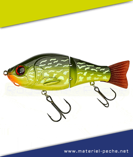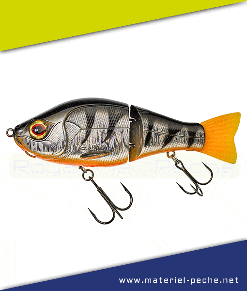Leurre Gunki Scunner 135 S Twin. Ce swimbait « deux sections » a été développé à partir du design imaginé pour notre OTACHI. Son corps, à la fois compact et volumineux, était parfait pour obtenir un leurre capable d’évoluer sous la surface, à très faible vitesse. Sa taille de 135mm, son poids de 56gr sont parfaitement adaptés à la traque des gros brochets, sans pour autant avoir à utiliser un matériel démesuré. Mais sa plus grand aptitude est sans conteste sa capacité à se mettre en mouvement (nage sinusoïdale) avec une récupération linéaire ultra lente. La qualité de la touche sera alors incomparable! (Petite astuce : si vous devez ralentir au maximum votre SCUNNER et obtenir une nage plus ample, enlevez l’hameçon à l’arrière du leurre). Doté d’une attache sous la tête pour ajouter un lest (John Weight), le SCUNNER est capable d’évoluer plus profondément, à différentes hauteurs dans la couche d’eau. Il vous sera alors facile de l’adapter à la profondeur de prospection idéale de votre plan d’eau et/ ou selon la capacité du jour des poissons à « monter » pour attaquer une proie. Hameçon triple ventral monté sur émerillon rolling. Queue amovible.